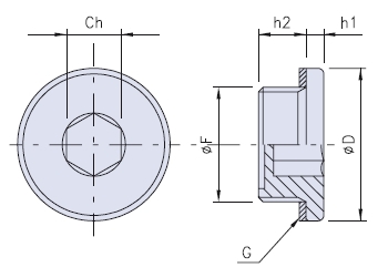 Tappo filettato di chiusura con esagono incassato per ridurre al minimo l'ingombro esterno.
